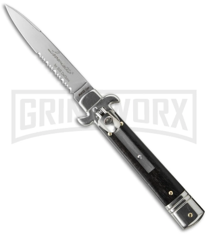 Be the first to review “AKC Bill DeShivs 7.5″ Leverletto Ebony Wood Automatic Knife – Flat Serr” Cancel reply
