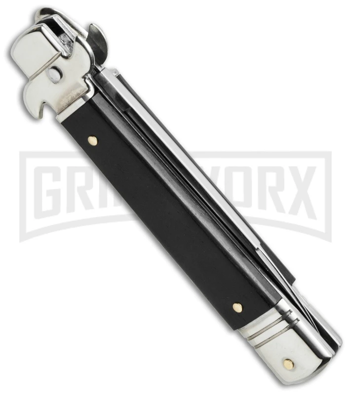 Frank B. 11″ Italian Stiletto Dark Horn Automatic Knife – Kris Polish