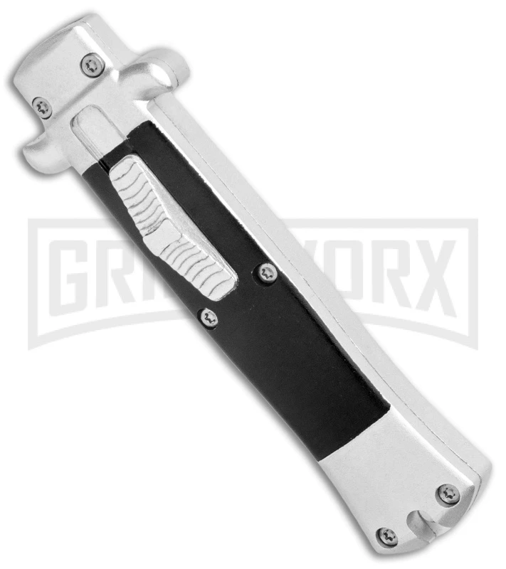 Be the first to review “Enzo Stiletto Mini Black W/ Silver Bolsters OTF Automatic Knife – Satin Plain” Cancel reply