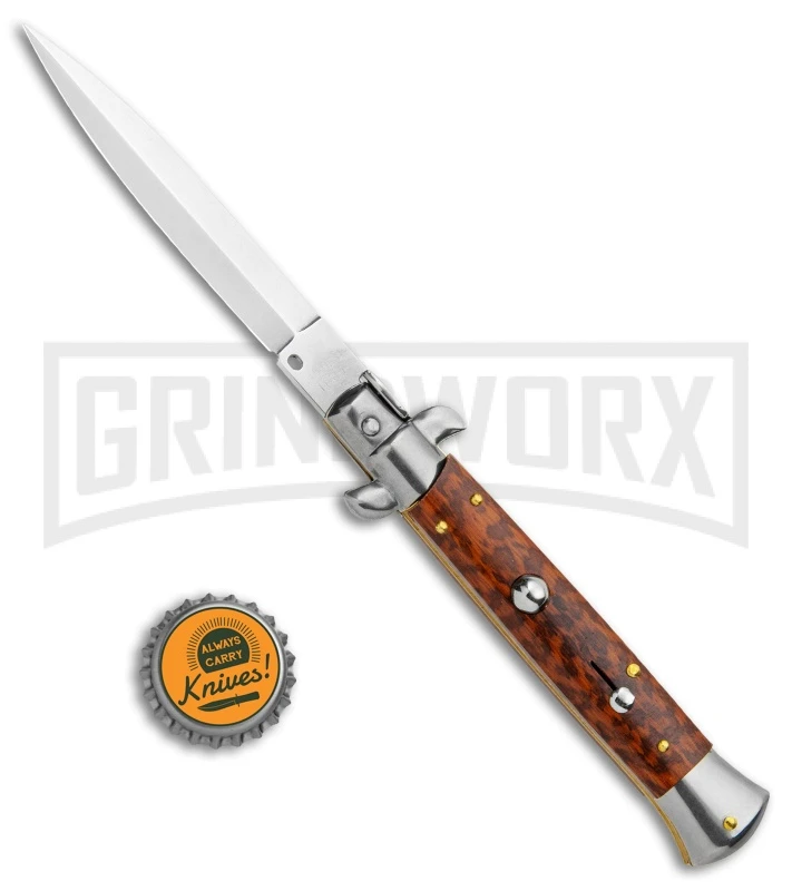 Frank B. 11″ Italian Stiletto Dark Horn Automatic Knife – Kris Polish