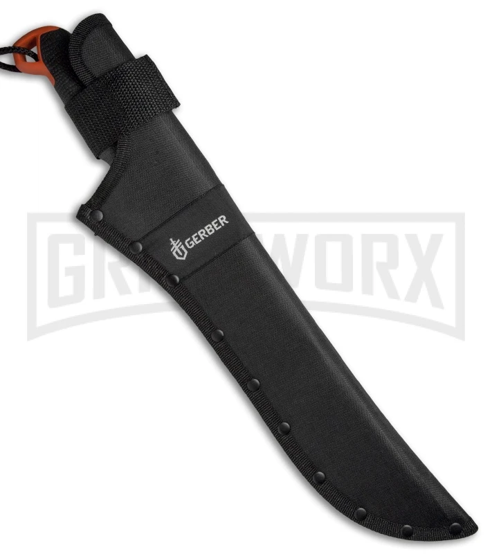 Manage any wilderness adventure with the Gerber Compact Clearpath Machete. This bad boy is compact enough for comfortable carry yet large enough for any difficult cutting job. The blade is made from stainless steel with a bead blast finish for maximized corrosion resistance. It has a gator grip handle that offers outstanding grip performance. A lanyard cord finishes off the highly functional design. Item includes a nylon sheath for comfortable carry.