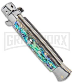 Frank B. 9″ Italian Stiletto Abalone Automatic Knife – Bayonet