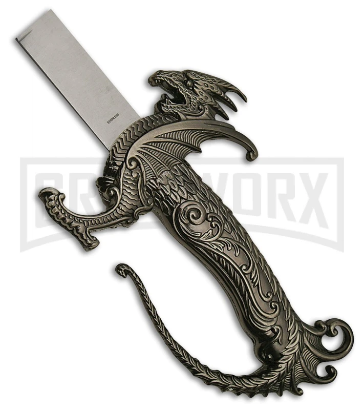 The Rite Edge Fancy Dragon is a sword that you can use to rescue your princess from a terrible dragon, or to add to your collection. The stainless steel, blade has a satin finish. The handle is made of aluminum shaped like a dragon. It comes with a black aluminum scabbard with aluminum fittings.