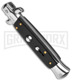9″ Anomaly Stiletto Black Pearlex Automatic Knife – Satin Kriss