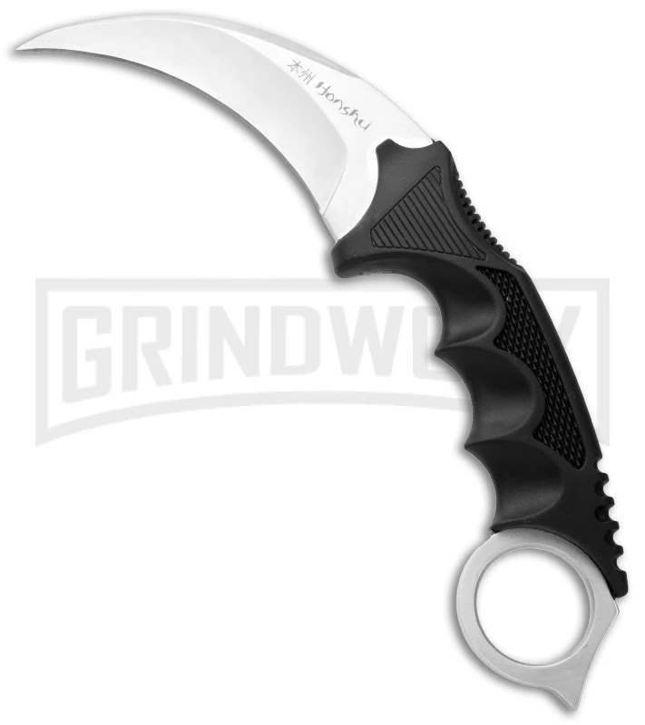 The Honshu Karambit is an excellent defense weapon that includes an ABS shoulder harness for easy carry. The hawksbill style curved blade is 7CR13 stainless steel with a satin finish and the handle features an over-molded three-finger grip and an open hole pommel.