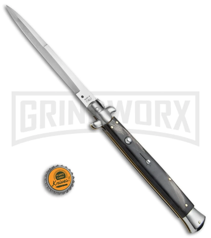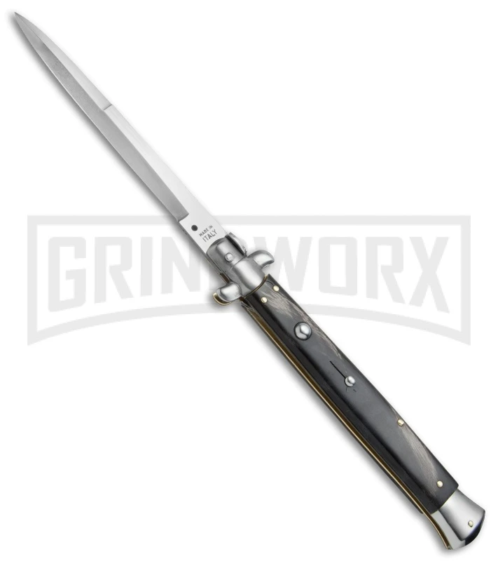 SKM 13″ Dark Horn Italian Stiletto Automatic Knife – Bayonet Satin Plain