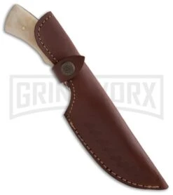 Rough Rider Otter Hunter Brown Leather Fixed Blade Knife – Satin Plain
